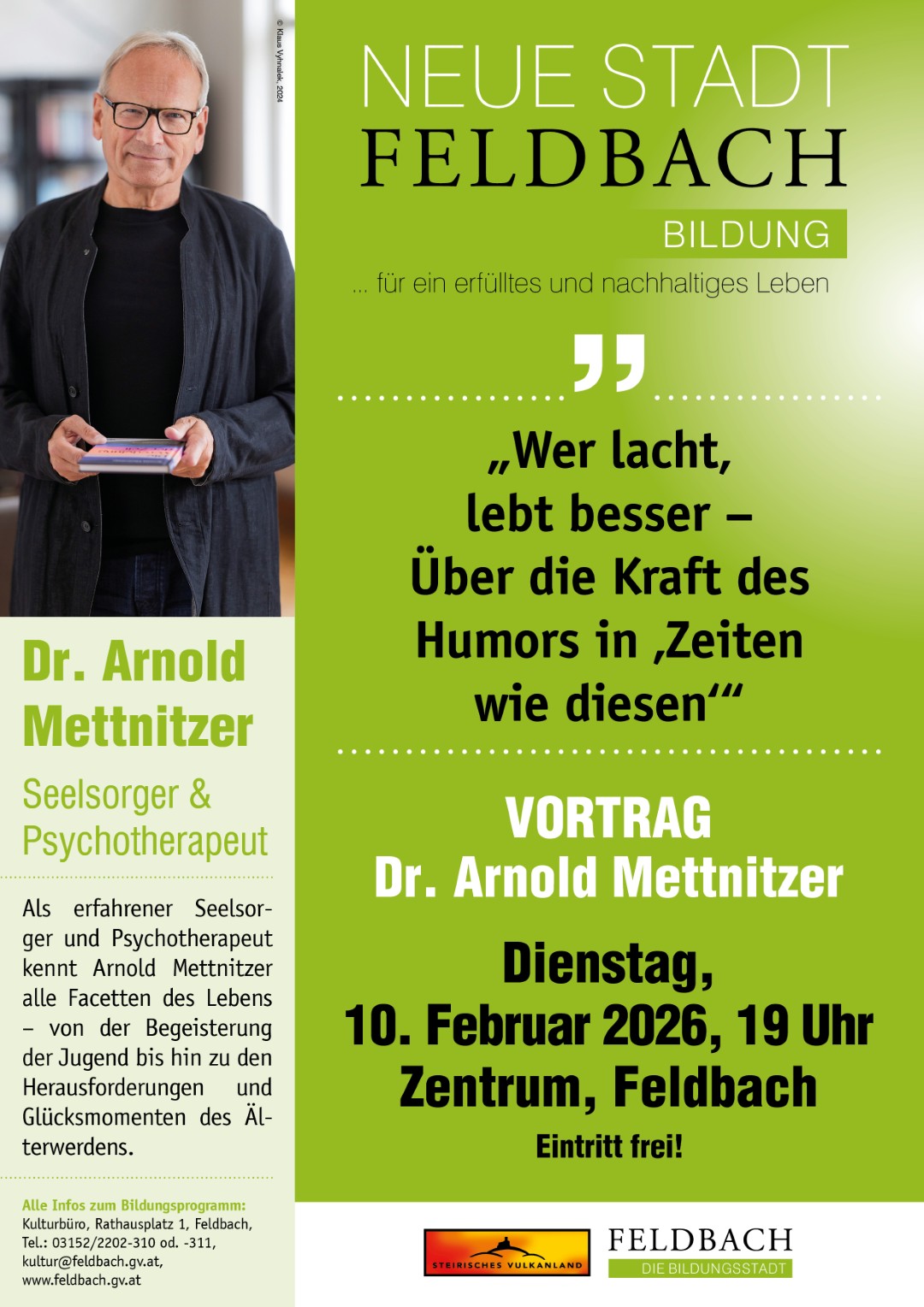 Neue Stadt Feldbach Neue Stadt Feldbach Portrait Aktuelles Gemeindezeitung Sehenswürdigkeiten Tourismus Webcam Verwaltung und Politik Einrichtungen der Stadtgemeinde Die Bildungsstadt Die Bildungsstadt Schule der Zukunft Vorträge Kindergärten & Kinderkrippen Schulen Die Einkaufsstadt Die Einkaufsstadt Stadt neu erleben 8 Städte Gutschein Tourismusverband Kulinarisches Feldbach Die Wirtschaftsstadt Die Wirtschaftsstadt Wirtschaftsservice Betriebe der Stadt Gründe(n) in Feldbach Start Up & Coworkingspace Die Gesundheitsstadt / Die altersgerechte Stadt Die Gesundheitsstadt / Die altersgerechte Stadt Wichtige Notrufnummern Gesundheitstelefon Ärztesuche LKH Feldbach Die Kulturstadt Die Kulturstadt Feldbacher Musikfrühling Feldbacher Sommerspiele Nebel reißen Kunsthalle Feldbach Die familienfreundliche Stadt Die familienfreundliche Stadt Eltern-Kind-Bildung Gemeinsam stark für Kinder Jugendzentrum Spektrum Omas und Opas Universität Service Service Bürger A-Z Amtstafel Behörden & Einrichtungen Soziales Feldbach Feldbach sicher und zukunftsfähig gestalten Feldbach sicher und zukunftsfähig gestalten Blackout-Vorsorge Klima- und Umwelt Feldbach mobil Feldbach in Bewegung Feldbach in Bewegung Freizeitzentrum Feldbach Radfahren in der Region Wandern in Feldbach Sportstätten online buchen Wohnen in Feldbach Wohnen in Feldbach Wohnbauprojekte Verfügbare Grundstücke Immobilienmakler