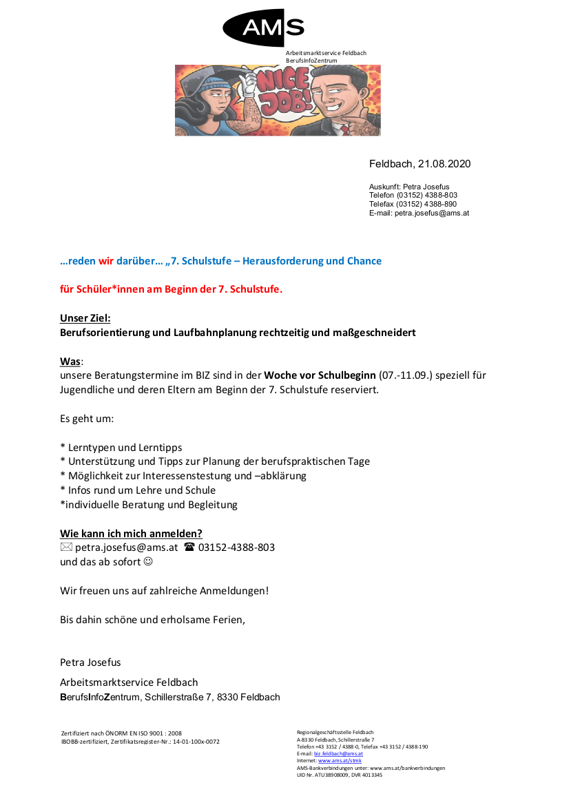 „7. Schulstufe – Herausforderung und Chance“ – das BIZ Feldbach informiert