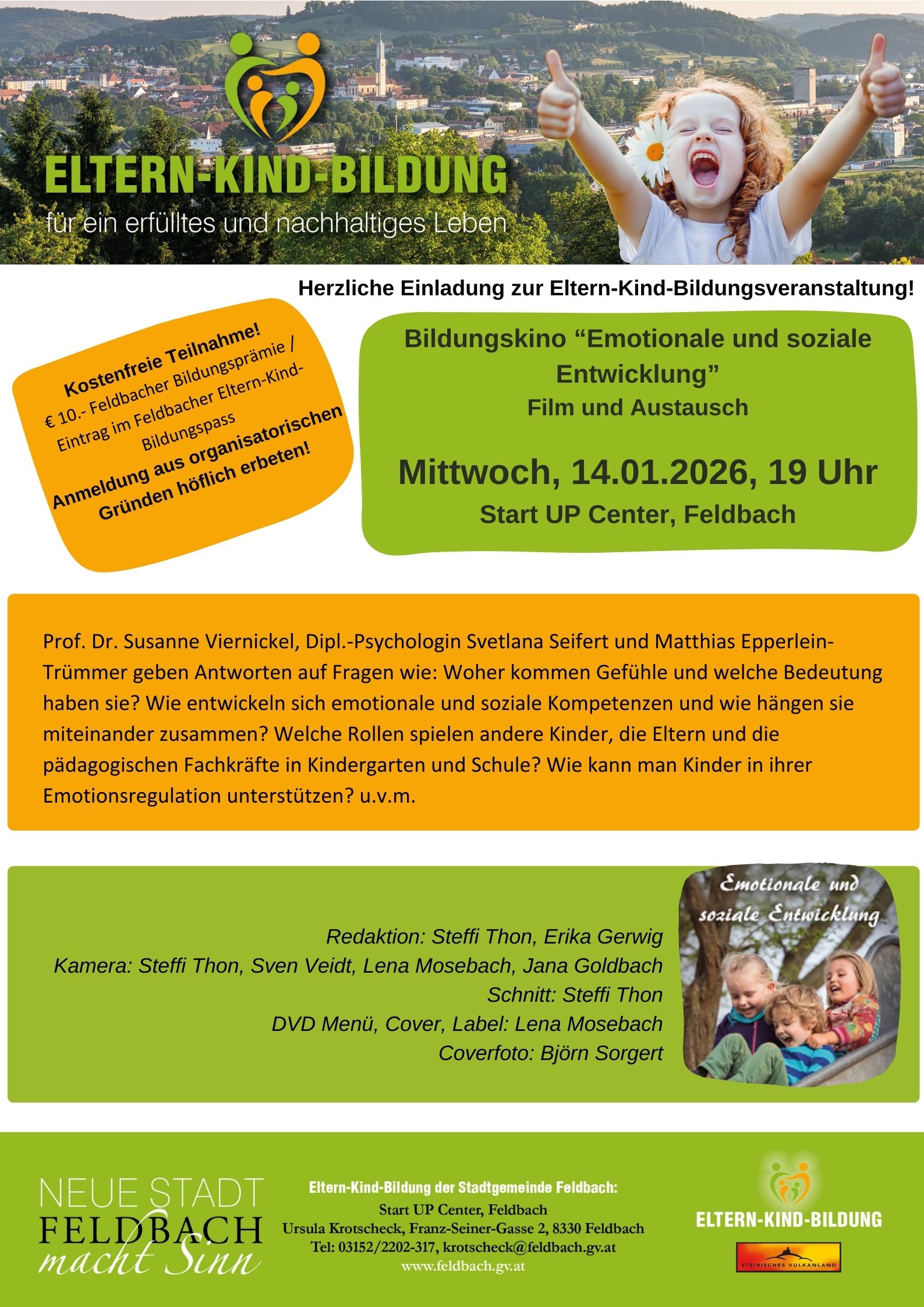 BILDUNGSKINO „Emotionale und soziale Entwicklung“ – Mittwoch, 14.01.2026, 19 Uhr, Start UP Center, Feldbach