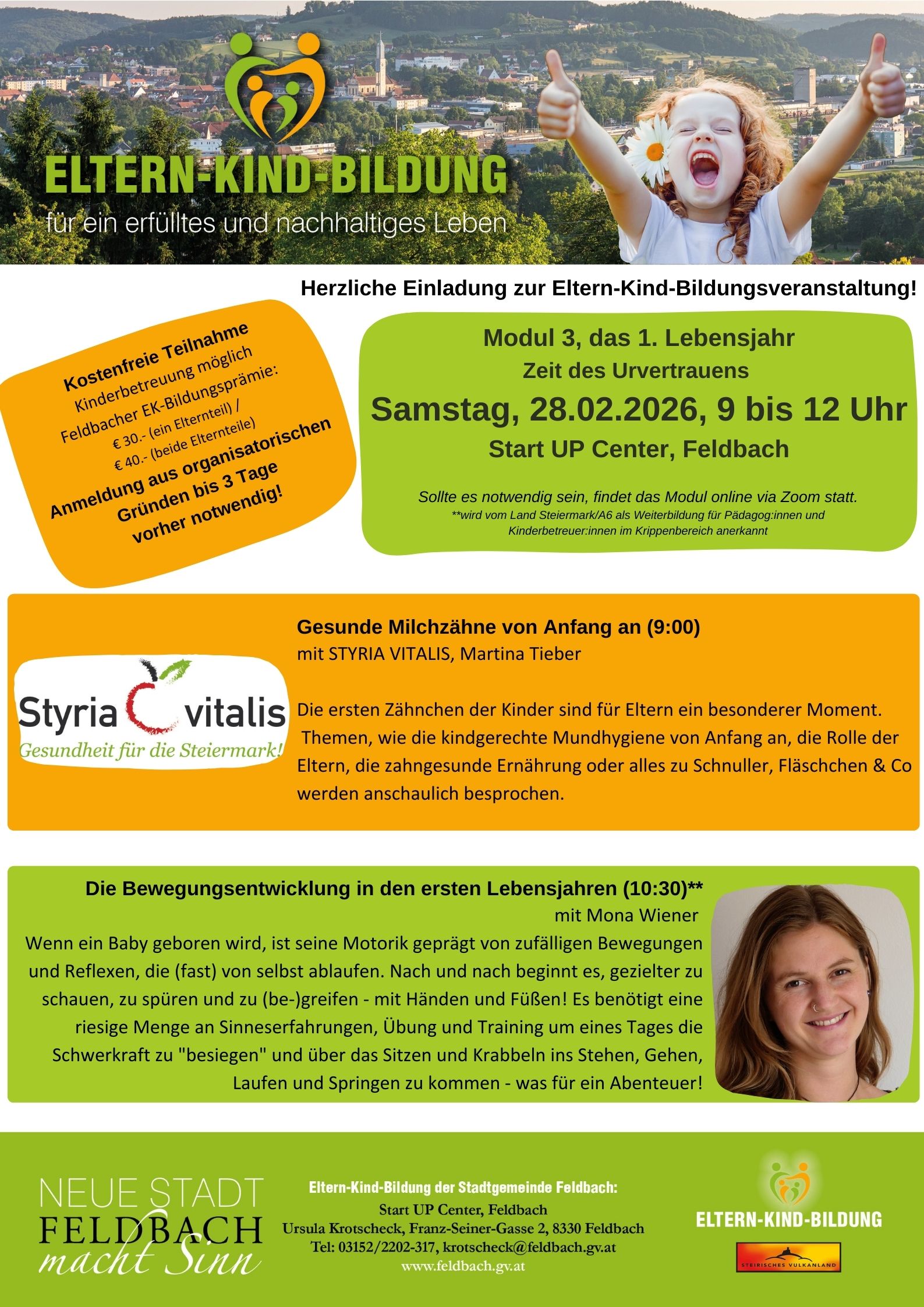 EKB Modul 3, das 1. Lebensjahr – Zeit des Urvertrauens – Samstag, 28.02.2026, 9 bis 12 Uhr, Start UP Center, Feldbach