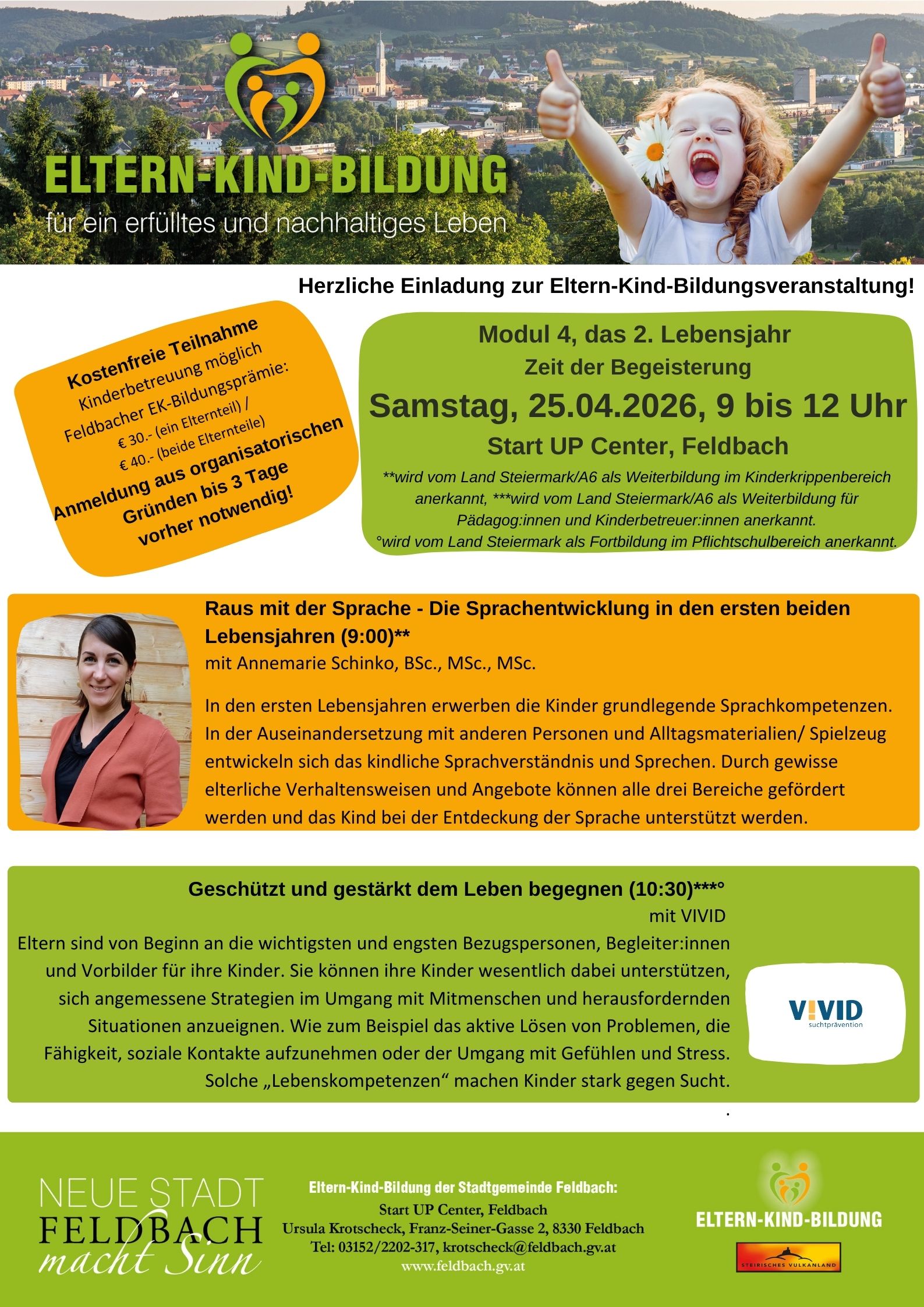 EKB Modul 4, das 2. Lebensjahr– Zeit der Begeisterung – Samstag, 25.04.2026, 9 bis 12 Uhr, Start UP, Feldbach