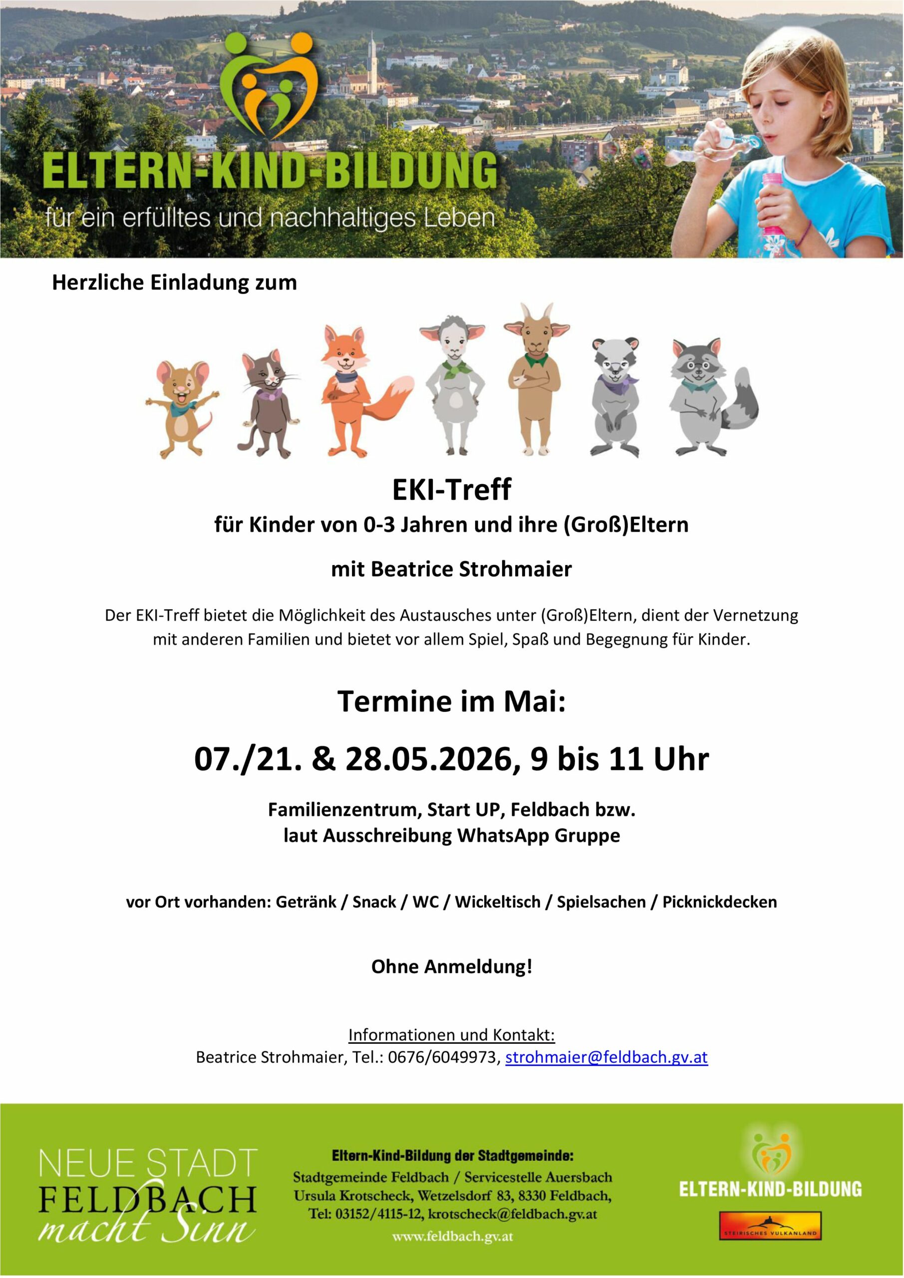 EKI-Treffs im Mai Donnerstag, 07./21. & 28.05.2026, 9 bis 11 Uhr, Start UP, Feldbach bzw. lt. WhatsApp Ausschreibung
