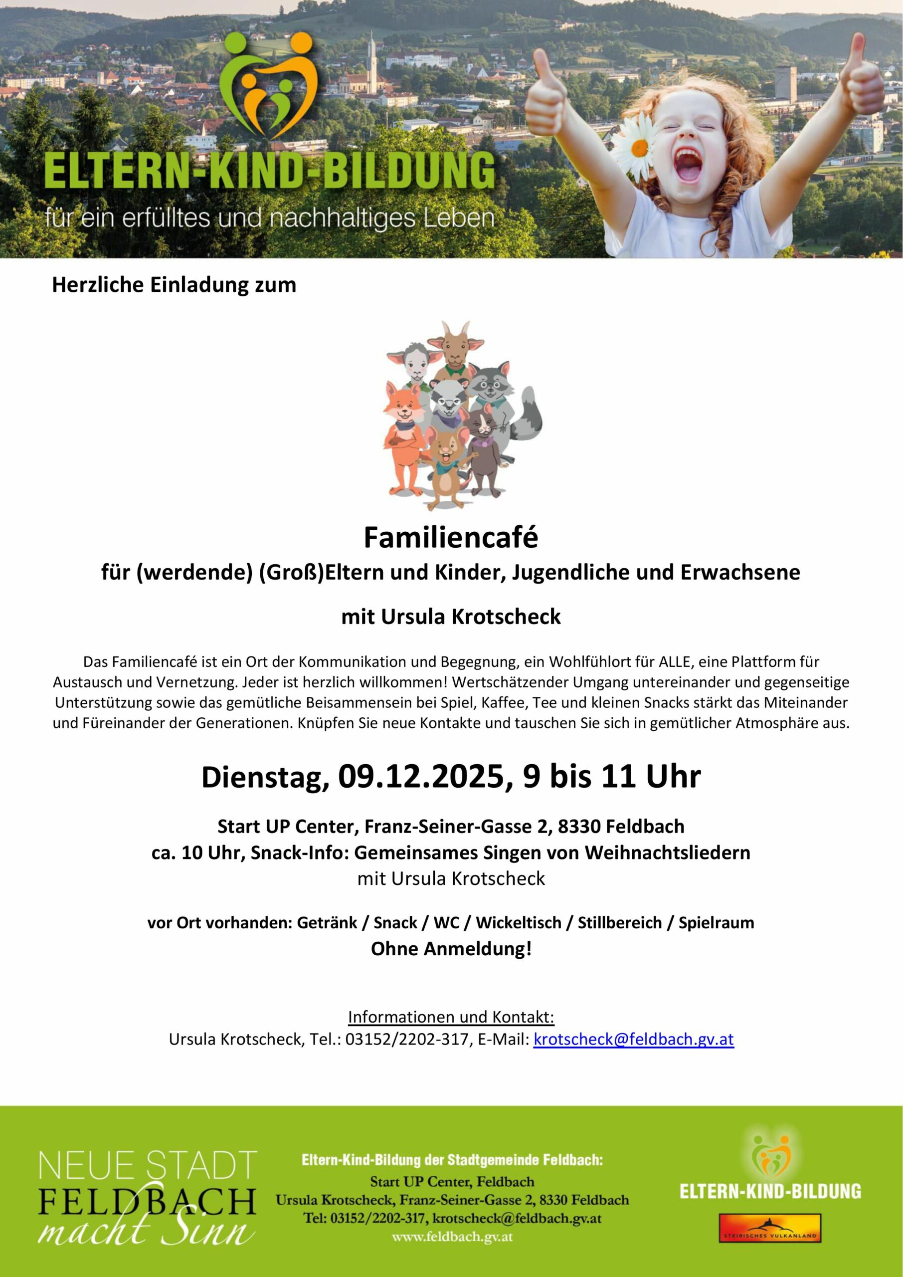 um ca. 10 Uhr Snack-Info: gemeinsames Singen von Weihnachtsliedern, mit Ursula Krotscheck