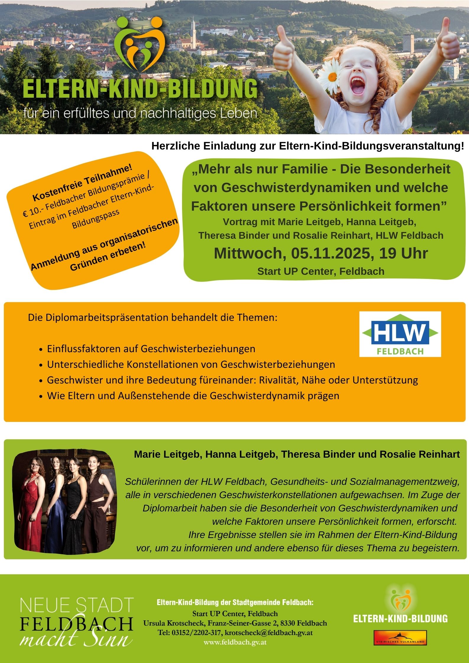 „Mehr als nur Familie – Die Besonderheit von Geschwisterdynamiken und welche Faktoren unsere Persönlichkeit formen“ – Mittwoch, 05.11.2025, 19 Uhr, Start UP Center, Feldbach
