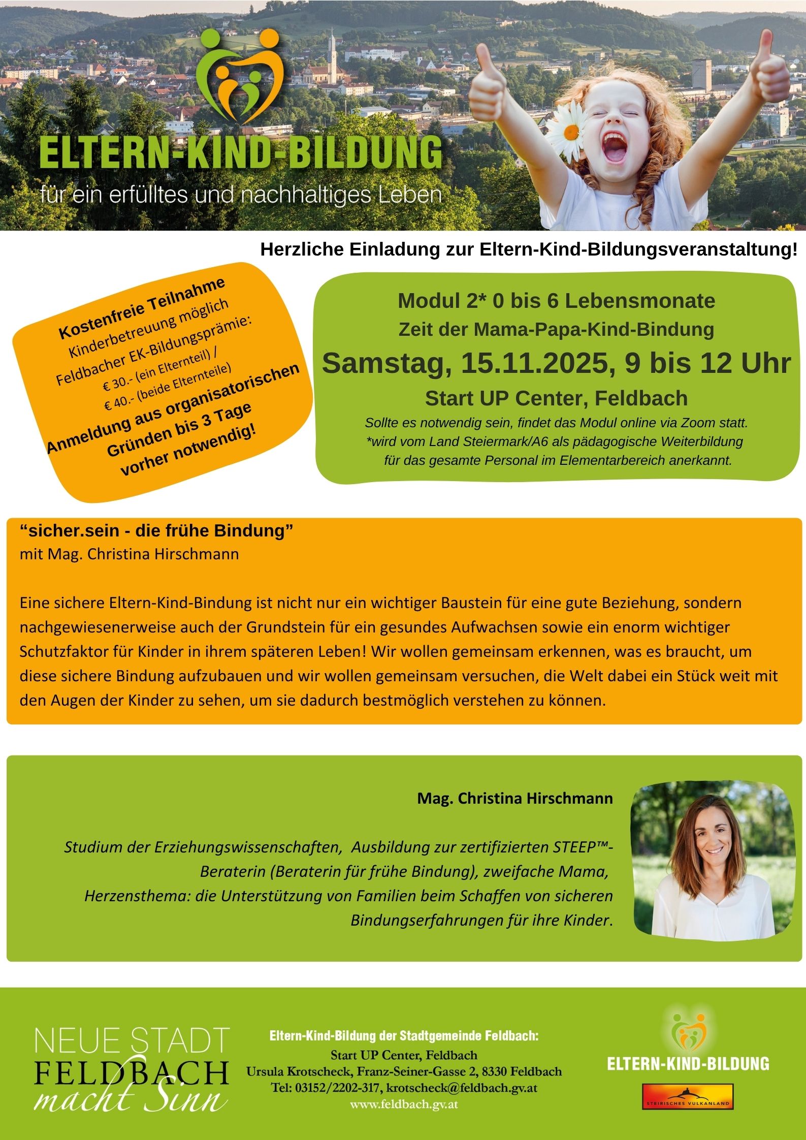 „sicher.sein – die frühe Bindung“, mit Mag.a Christina Hirschmann