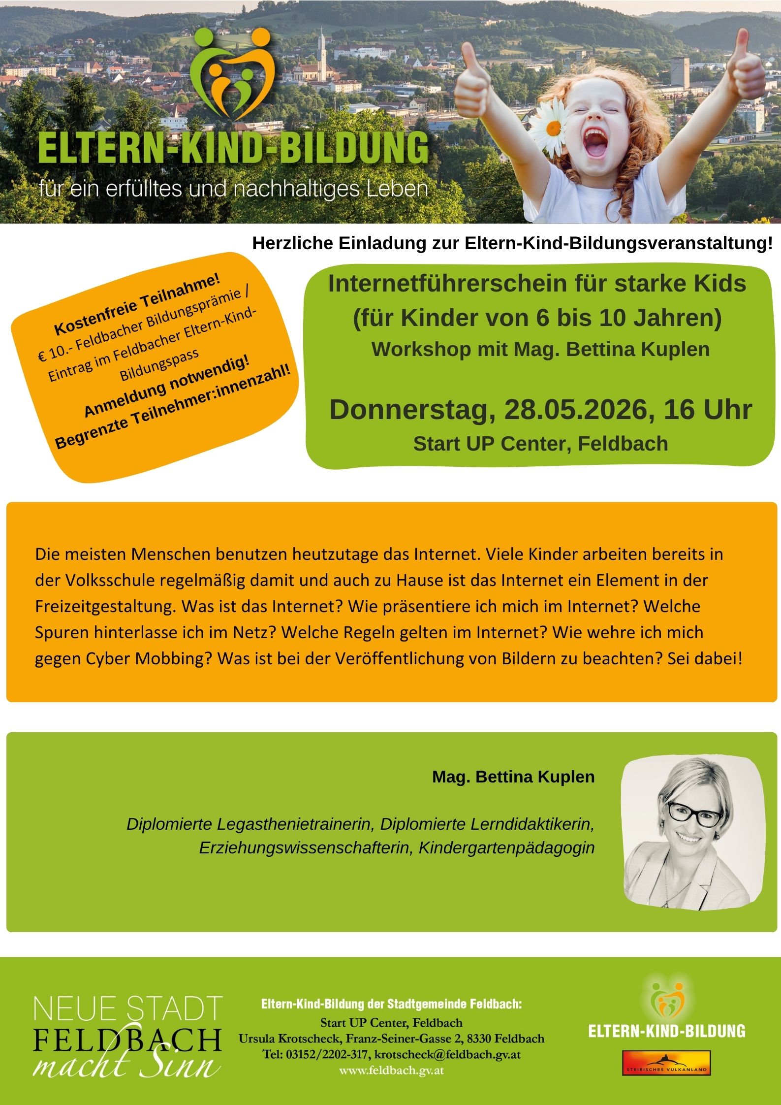 WORKSHOP „Internetführerschein für starke Kids“ – Donnerstag, 28.05.2026, 16 bis 17 Uhr, Start UP, Feldbach